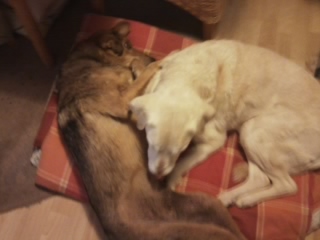 Danach machte ich dann auch gleich das Abendbrot für die Süßen und danach wollte sie nur noch 2 oder 3 mal raus, aber dann legte sie sich doch hin und schlief tief und fest ein. Wie immer wachte sie dann gegen 19.00 Uhr auf und wollte ins Bett. Wobei es ja schon nach ihrer Rechnung 20.00 Uhr war. Da lässt sie auch nicht mit sich reden, Bett ist Bett und dicke Kissen hier unten sind dicke Kissen nur! So werde ich nachher noch versuchen, sie runter zu holen, damit sie noch einmal raus kann.